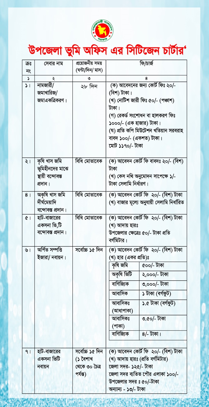 খাস জমি বন্দোবসত্ম, খাস জমি রক্ষনাবেক্ষন, খাস জমি চিহ্নিত করণ, সিকসিত্ম পয়সিত্ম জমির কার্যক্রম, রেকর্ড সংশোধন, রেকর্ড সংরক্ষণ, জেলা রেকর্ডরুমসহ সংশ্লিষ্ট ব্যক্তিগণ‘কে খতিয়ান প্রেরণ করা হয়।